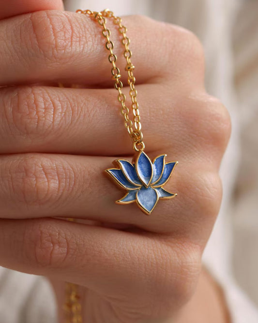 Enamel Lotus Flower Necklace Gold Plated