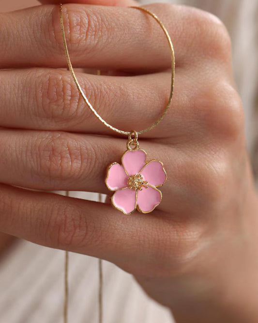 Dainty enamel Sakura flower Necklace Gold plated