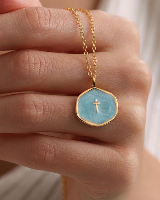 Dainty enamel cross Necklace 24k Gold plated