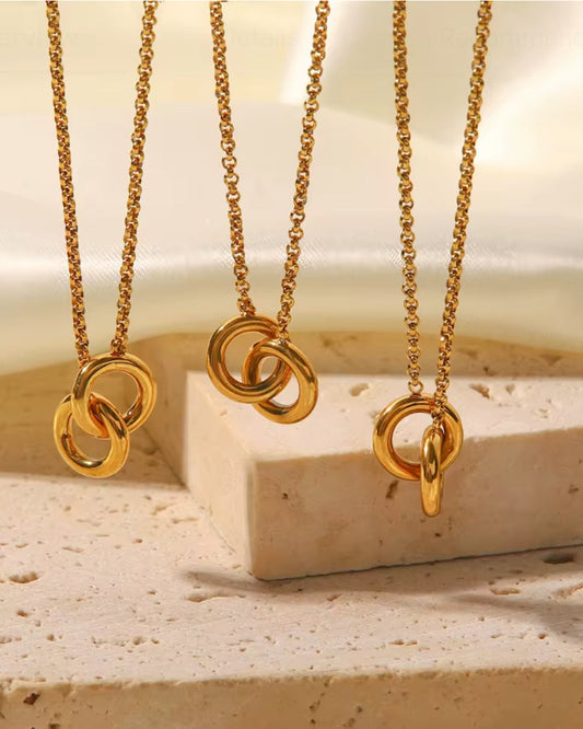 Interlocking circles necklace Tiny 18k Gold plated Jewelry